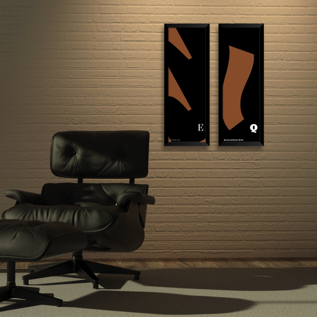 Each poster will be printed individually, measuring 11.75" x 36" on high quality, archival matte paper using permanent inks with deep, rich blacks, and a highlight color matched to Pantone 160. The art includes the uncropped letterform for reference along with the typeface name. Prints are not framed but a framing option is available.